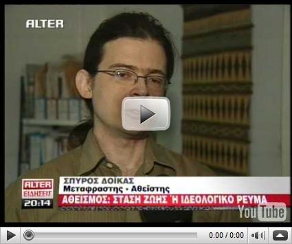 12 Ιανουαρίου, 2009Δεν είναι κάθε μέρα που εγώ και το φτωχικό μου ιστολόγιο αναφέρεται σε κυριακάτικο περιοδικό μεγάλης εφημερίδας. Εντελώς απροετοίμαστο και εν μέσω μίνι-διακοπών με έπιασε η χτεσινή δημοσίευση του άρθρου της Αφροδίτης Πολίτη στο Έψιλον της Κυριακάτικης Ελευθεροτυπίας με τίτλο Δηλωμένοι Άθεοι (σελίδα 44). Οι συνεντεύξεις είχαν πραγματοποιηθεί πριν από ένα μήνα περίπου. Όποιος δεν προμηθεύτηκε το ένθετο μπορεί να βρει όλες τις σελίδες του άρθρου εδώ.